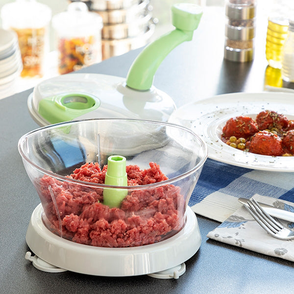Les ventouses de la base assurent une prise ferme et antidérapante pour une utilisation en toute sécurité. Avec cet ustensile, vous pouvez hacher vos légumes et viandes en un tournemain. Les lames en acier sont particulièrement efficaces pour des ingrédients comme les oignons, les tomates, les poivrons, les carottes, l'ail, et même les avocats!