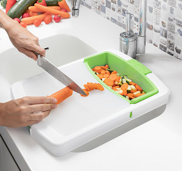 Imaginez pouvoir éplucher, couper et laver vos aliments facilement sans multiplier les ustensiles ! Grâce à son design innovant et fonctionnel, cette planche s'adapte à votre évier, vous permettant de travailler de manière optimale tout en économisant de l'espace. En plus, elle est légère et maniable, ce qui la rend facile à transporter et à ranger.