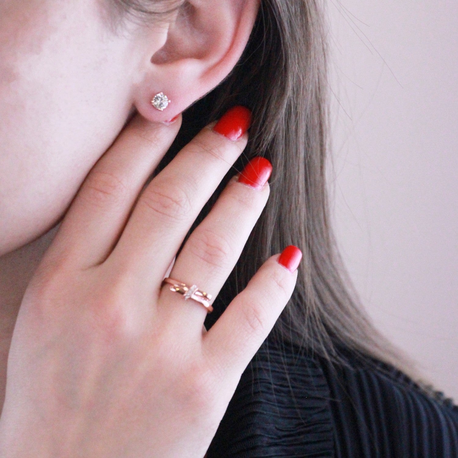 Conçu avec soin à partir de laiton de haute qualité, chaque pièce est à la fois durable et légère, vous garantissant un confort optimal tout au long de la journée. La finition plaqué or rose 18k et plaqué rhodium apporte une note d'élégance intemporelle, parfaite pour toutes vos occasions, qu'il s'agisse d'une soirée glamour ou d’une sortie décontractée.