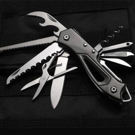 Découvrez notre couteau suisse multifonctionnel, l'outil parfait pour tous vos besoins quotidiens et vos aventures en extérieur. Que vous soyez un passionné de camping, un bricoleur ou simplement à la recherche d'un accessoire pratique à avoir à portée de main, ce couteau est fait pour vous.