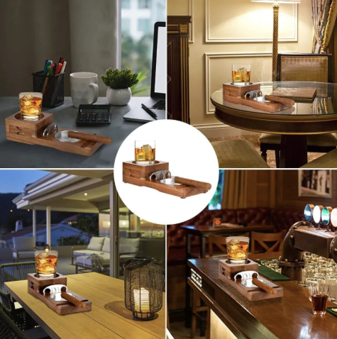 Ne manquez pas cette occasion d'améliorer vos moments de détente avec notre cendrier à cigares en bois et dessous de verre de whisky assorti. Transformez chaque instant en une véritable célébration du goût et du raffinement.