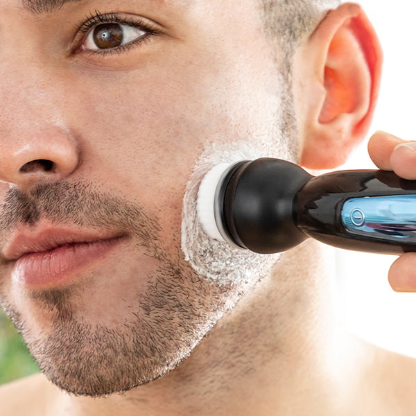 Le rasoir inclut trois têtes interchangeables et trois peignes de coupe (1-3-5 mm), vous fournissant la flexibilité nécessaire pour personnaliser votre look. En plus, une brosse nettoyante faciale et un applicateur de savon à raser sont également intégrés pour un nettoyage complet du visage.