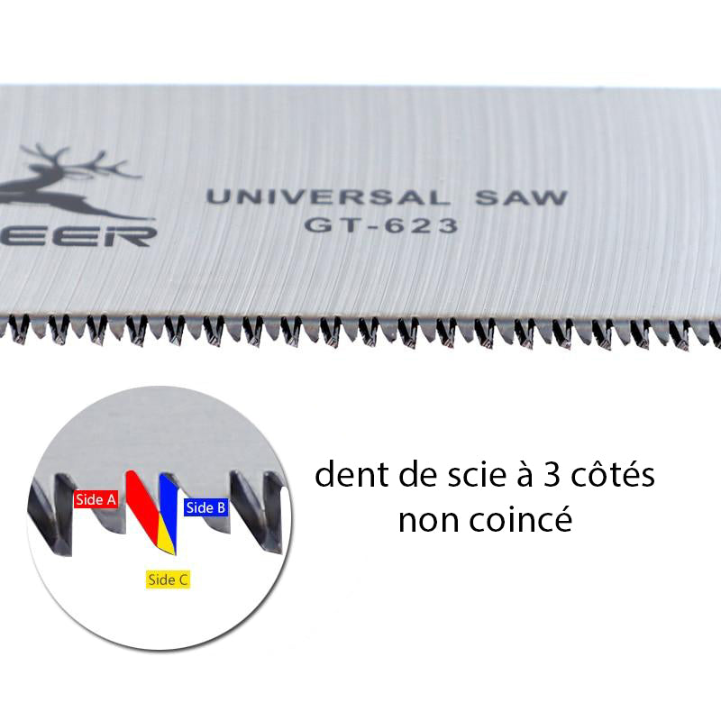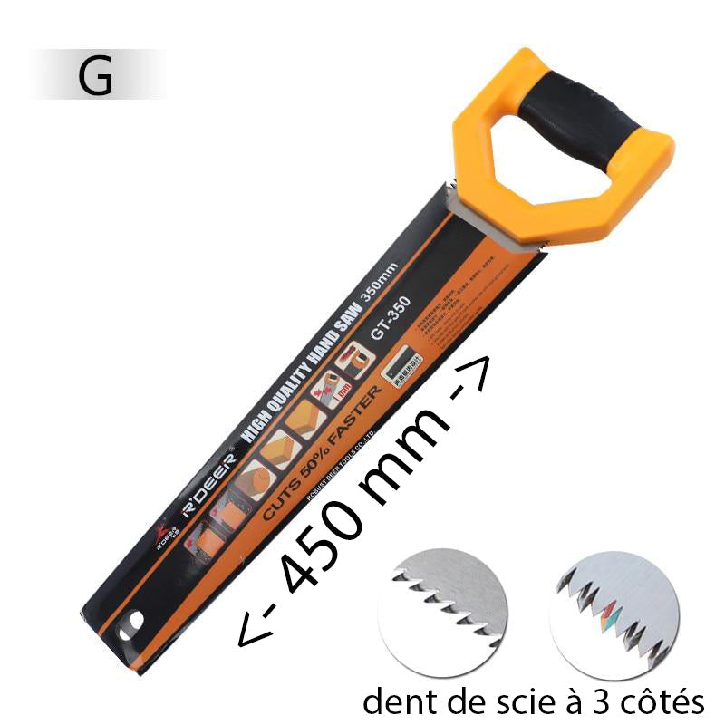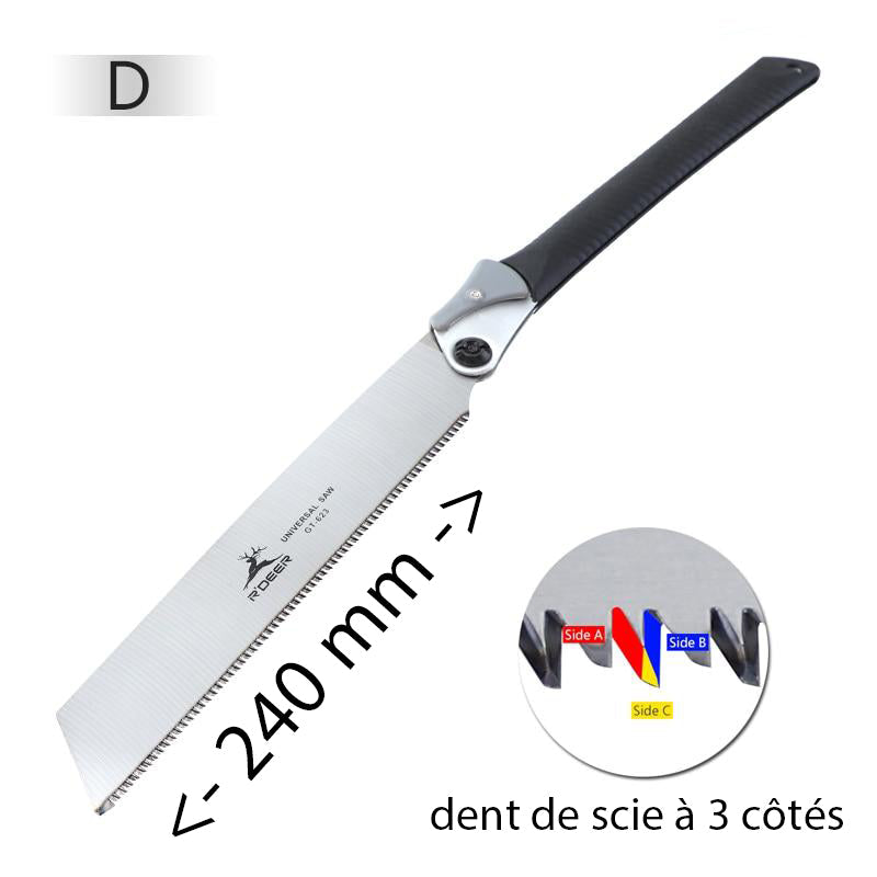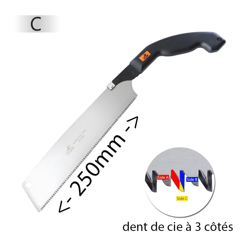 Dotée d'une scie à double bord résistante à l'usure, sa lame en acier au manganèse assure une coupe précise et efficace, rendant votre travail plus rapide et plus agréable. Le manche en bois léger offre une prise en main confortable, ce qui est essentiel pour effectuer des découpes prolongées sans fatiguer vos mains.