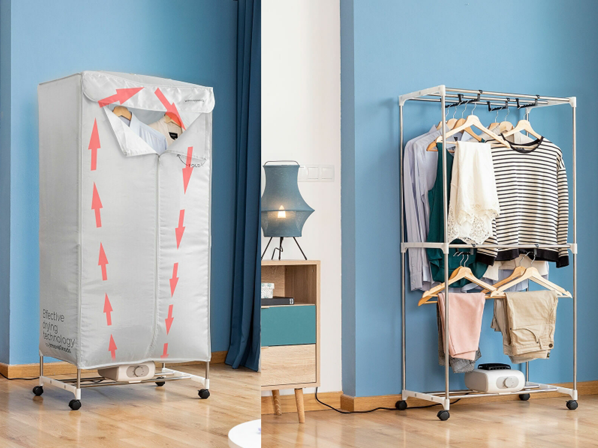 - **6 supports pour cintres** : Une capacité de séchage impressionnante pour tous vos vêtements, du plus léger au plus lourd.