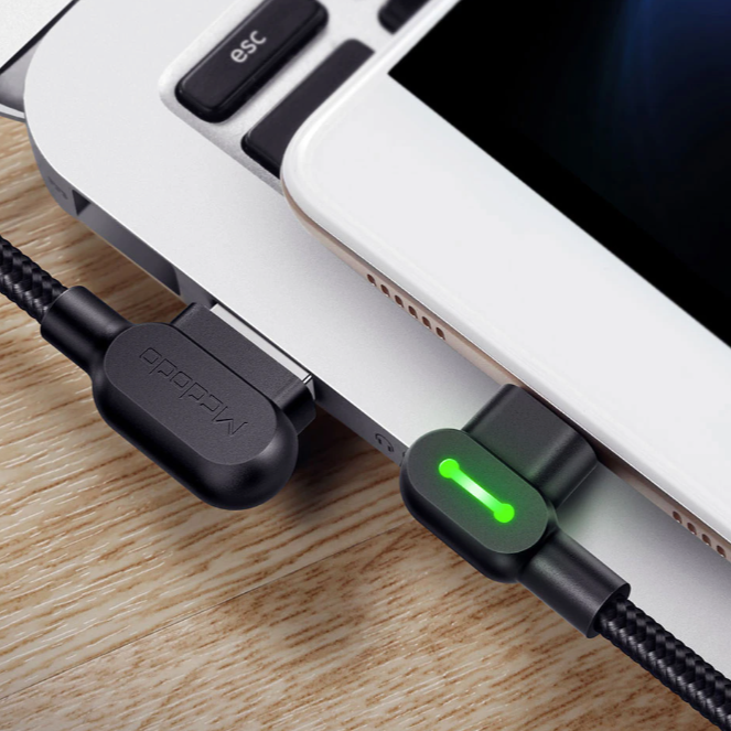 Mais ce n'est pas tout ! Nos câbles sont aussi dotés d'un design unique à angle droit en forme de L, idéal pour les amateurs de jeux ou ceux qui aiment regarder des vidéos. Cette conception innovante réduit la flexion du câble, protégeant ainsi l'interface pendant son utilisation et prolongeant sa durée de vie.
