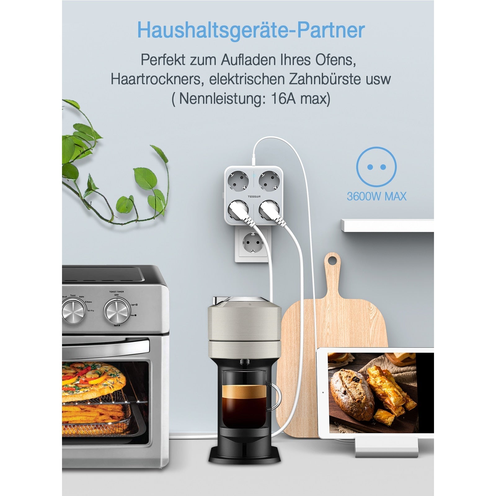 Cette multiprise compacte s'installe facilement dans n'importe quelle prise murale. Avec une puissance impressionnante de 3600 Watts, vous bénéficierez de 4 prises de courant alternatif et de 3 ports USB dédiés. De plus, l'ergonomie a été soigneusement étudiée : les prises sont inclinées à 45°, ce qui permet de maximiser l'espace et d'éviter les chevauchements.