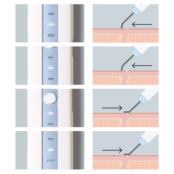 Il est recommandé d'appliquer les modes Sonic et ION+ avec des nettoyants ou des toniques, tandis que le mode ION- fonctionne à merveille avec vos crèmes préférées. N'oubliez pas de ne pas passer plus de 2 minutes par fonction ou sur la même zone pour un résultat optimal.
