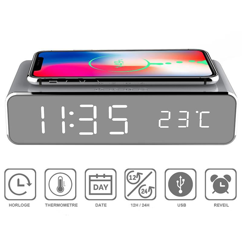 Réveil LED Élégant avec Chargeur Wireless Intégré pour tous vos appareils