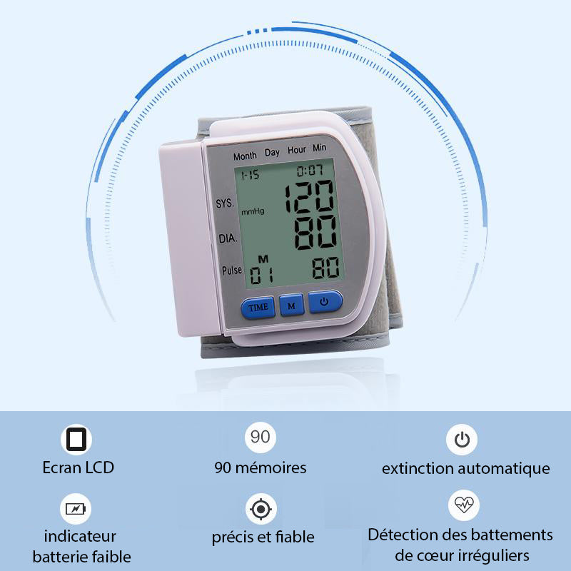 Tensiomètre Électronique au Poignet avec Affichage Complet et Garantie 3 Ans