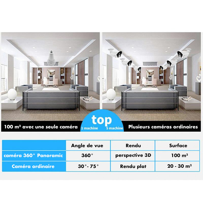 Ampoule espionne avec caméra panoramique 360° HD