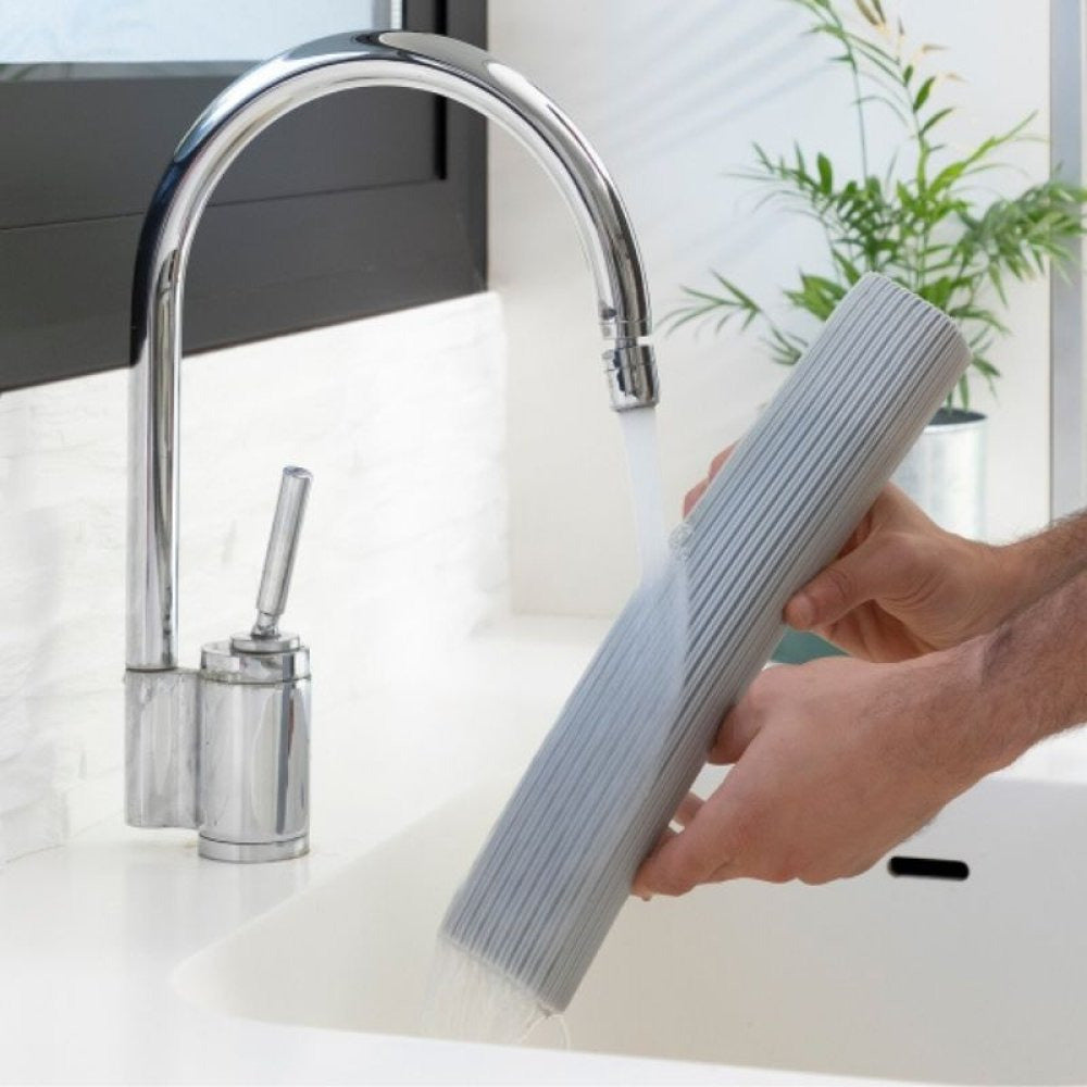 Pour un nettoyage en profondeur, il vous suffit de plonger l’éponge dans de l'eau chaude pendant 2 à 5 minutes. Une fois prête, rincez-la à l'eau fraîche et essorez-la facilement, ainsi vous évitez de répandre de l'eau sale. Fini le temps des serpillières traditionnelles où il fallait se salir les mains pour obtenir une éponge essorée !